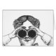 lijntekening van een vrouw met binoculars die in haar ogen vastgehouden wordt