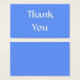 Dank u, geschreven in een aardig manuscriptdoopvont, in wit en een aardige blauwe kleur.