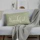 Een modern eenvoudig lumbaal kussen in salie groen met de woorden "Zo zeer dankbaar", personaliseren met jouw naam. Dit kussen is de perfecte aanvulling op uw herfst herfsthuisdecoraties, of maakt een prachtig cadeau.