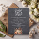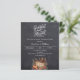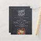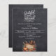 Een nep roestige krijtbord achtergrond. Versierd met een houten bord met een oude hoed, pompoen, maïs. Personaliseer en voeg de feestdetails toe.