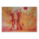 Un sillouette d'un couple, d'un homme et d'une femme, danse, une boule de disco accrochée d'en haut, roses roses et jaunes en couleurs sont à l'arrière-plan, avec des pétales tourbillonnant autour. Cette peinture expressive et soustraite donne la sensation de l'amusement et de la célébration. Aquarelle et guache. J'ai fait ceci comme promo pour la bande de musique de jazz d'un ami.