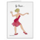 Une jeune fille aux cheveux blonds et portant une robe rouge, danse.