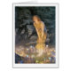 Art vintage de Hughes. Une jeune fille en robe dorée se dresse au milieu d'une bague de féeries dansantes. Eve de mi-été.