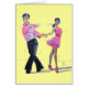 Paires des danseurs A de cha de cha de cha d'invitation de danse de cha de cha de cha de danseurs de salle de bal de Cha Cha Cha de danseurs de salle de bal de cha de cha de cha. Une fille portant une robe froncée de flouncy rose court et des chaussures roses de talon haut. Un danseur masculin avec une chemise habillée rose et des chaussures de pantalon et noires noires