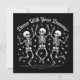 Drie dansende skeletten met typografie van Dance With Your Demons.