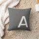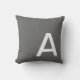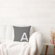 Vet donkergrijs stevig kleurenblok kussens met uw monogram initiaal aan één kant en jouw naam in omgekeerde kleuren aan de achterkant. Aangepaste gepersonaliseerde kussens en thuisaccenten. Deze monogram kussens zien er geweldig uit op de bank, sofa, stoel, bed, bank of boekenplank. Voeg gepersonaliseerde kussens toe aan de slaapkamer, woonkamer, veer, huiskamer of gastkamer. Uit proefuitingen.
