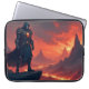 A dark knight — a mysterious fantasy warrior from the burning lands, surrounded by lava and a hellfire landscape. This armored fighter is a true skull warrior, reigning over an epic fantasy and fantasy realm. Full of evil and power, he roams a land filled with fire and volcanic mountains.