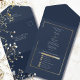 Dit marinescript op wit met een gouden en marineblauwe rand is een elegante RSVP-kaart en menuselectiekaart. De achterkant heeft een marine achtergrond met je namen en een gouden ampersand. Kan worden gebruikt voor bruiloften, geloften of jubilea