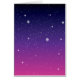 Dit prachtige ontwerp toont sterren van alle grootten op een briljante kleurige nachtelijke hemel die vervaagt van zeer donker bovenaan naar een diep paars in het midden en uiteindelijk een lichter pinkachtig paars onderaan. Heel coole en elegante achtergrondkunst. Dit ontwerp van de starre hemel is geweldig als-is, maar je kunt ook je eigen tekst of afbeeldingen toevoegen om je eigen aangepaste creatie te maken.