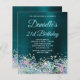 Dark Turquoise Holo Glitter 21st Birthday Invite