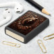 Een gesneden lederen portret van een grizzly beer, omlijst met ingewikkelde bloemdetails. Het snijwerk is gedetailleerd en realistisch.
