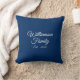 Pas de achternaam van het paar, jaar, aantal Sierkussen witte tekst, marineblauwe achtergrond aan
