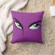 Blauwe ogen van een vrouw werpen kussen. De prachtige blauwe oogschoonheid werpt een kussen in Paars en zwart, pas uw ogen aan van een vrouw en gooi kussen in kleur, stijl en lettertype. Uniek Sierkussen thuiswijk.