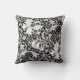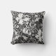 Werp hoofdkussen in een bloemendruk van vintage William Morris van gestileerde lelies en Irissen, die digitaal, in schaduwen van grijs wordt verbeterd en wordt gekleurd/grijs en wit op een zwarte achtergrond