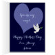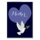 Dit afbeelding is van een witte duif met een groen blad dat in de lucht vliegt. Het hart is voorzien van een inscriptie op de kaart. Er is een donkerblauwe achtergrond toegevoegd. Pas je eigen woorden aan. Een mooie kaart voor moeder.
