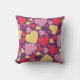 Dit hoofdkussen kenmerkt een paarse achtergrond met kleurrijke gevormde die harten in een collage wordt verspreid.