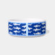 De leuke kom van het haaivoedsel voor woeste hond of kat. De naam van uw huisdier, de blauwe kleur als achtergrond en de blauwe grenskleuren zijn klantgericht allen.