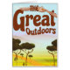 Het Grote cartoon landschap in de buitenlucht, een poster van een gouden adelaar in vlucht over een savannelandschap.