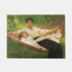 Dit ontwerp toont een schilderij van de Amerikaanse impressionistische kunstenaar Joseph DeCamp (1858-1923). Het show een vrouw en twee kinderen ontspannen op een hangmat tijdens de zomer. De vrouw is de vrouw van de kunstenaar Edith, het jonge meisje is zijn dochter Sally en de baby jongen is zijn zoon Ted. De vrouwen glimlachen zachtjes naar de kijker, terwijl het jonge meisje verveeld lijkt en de baby jongen slaapt. De hangmat is gelegen in een weelderige tuin met groene bomen en gras. Het originele kunstwerk werd geschilderd door Joseph DeCamp in 1895.