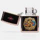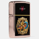Een badge met een dappere brandweerman die een slang klaar voor actie houdt, symboliseert moed en service.
