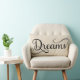Het woord "Dreams"in een zwarte manuscriptdoopvont. De neutrale achtergrond op de kussen kan gemakkelijk worden verwijderd en de kleur kan worden gewijzigd om uw decor aan te passen met het aanpassingsgereedschap. Een deel van de Sweet Dreams set.