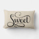 Het woord "Sweet"in een zwarte manuscriptdoopvont. De neutrale achtergrond op de kussen kan gemakkelijk worden verwijderd en de kleur kan worden gewijzigd om uw decor aan te passen met het aanpassingsgereedschap. Een deel van de Sweet Dreams set.