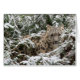 Een jonge sneeuwluipaard gluurt uit van in het midden van een mooie sneeuw behandelde struik.