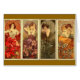 Ruby, Amethyst, Emerald, Topaz Alfons Maria Mucha (24 juli 1860 - 14 juli 1939), vaak in het Engels en het Frans bekend als Alphonse Mucha, was een Tsjechische kunstschilder en decoratieve kunstenaar die het best bekend staat om zijn eigen stijl. Hij produceerde veel schilderijen, illustraties, advertenties, briefkaarten en design.
