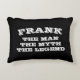 De man myth legende aangepaste naam macho accent kussen voor jongens. Vet zwart-wit typografie sjabloon. Personaliseer met je eigen naam en humoristische quote. Perfecte Vakantie en Verjaardagscadeaus voor vader, echtgenoot, broer, oom, opa, collega enz.