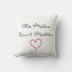 Pillow met de zin "De Miles doen er niet toe", samen met een donkerrode omtrek van een hart.
