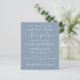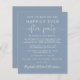 Begrotingsvriendelijk stoffige blauw, met uitzondering van de datum waarop een receptie of feest je huwelijksreis of kleine bruiloft vieren. "Sparen de Datum voor Onze gelukkig Ooit na Partij"wordt geschreven in een mengeling van eenvoudige witte typografie en een elegant wit manuscript met swashes. Pas uw trouwaankondiging meer in detail aan en voeg partij of ontvangst toe sparen de datumdetails en uw namen in een handtekening-als manuscript. Aan de achterzijde voeg uw voornamen en bruiloft- en ontvangstdata toe.