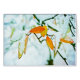 Een eerste sneeuw op het Morton Arboretum in Lisle, Illinois dust oranje, gele en groene magnolia bladeren.