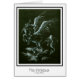 Een pegasus die vlucht. Witte krijt op zwart papier.