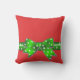 Wil je een pop kerstkleur toevoegen aan je decor? Doe het met deze perfecte moderne kerstkussen die voorzien zijn van een eenvoudig groen en wit polka-puntje lint en boeg op een rode achtergrond!