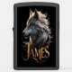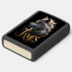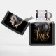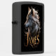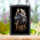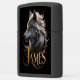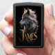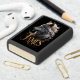 Een majestueuze witte wolf met een gouden kroon staart naar de kijker met wijze, krachtige ogen. James is geschreven in goud te midden van ingewikkelde bloemige design op een diepzwarte achtergrond.