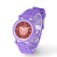 Stijlvolle Teacher's polshorloge gemaakt met een rode en witte geruite appel, tegen een effen rode achtergrond. De witte stippen en de getallen rond de rand vertegenwoordigen de uren. Aanpassen om tekst toe te voegen die u wilt.