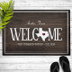 Een geweldige manier om vrienden en familie welkom te heten met deze persoonlijke welkome mat. Uw thuisstaat komt in de plaats van de letter O in de WELCOME groet, met een rood hart dat uw geboorteplaats aanwijst. Ben zeker om "aan te passen"te klikken om het hart naar uw gebied van de staat te verplaatsen. Maakt een fantastisch huishouden of een nieuw cadeau.