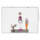Dit is een griezelig en schattig ontwerp, het meisje heeft knopogen en er zijn wolken aan beide uiteinden van de hemel. Een steenzustende tuin, een bonzi-boom en een vaas met bloemen rond de tekening.