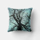 Dit werpen kussen kenmerkt het uitzicht van de bodem van een zeer hoge knol boom die omhoog naar de bovenkant kijkt. De blauwe schemerhemel creëer een interessant, abstract effect van gedempte boomstam en takken. Deze grote oude boom leeft in Robert H. Treman State Park in Ithaca, New York. Het afbeelding wordt op de achterkant herhaald.
