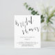 Elegant de Uitnodiging van de Bridal van het Manuscript Bridal. Een budgetvriendelijk KLEINER 4,5 x 5,6-inch alternatief. Verkrijgbaar in een SEMI GLOSS 110 lb KAART STOCK of een SATIN FINISH 80 lb THINER PAPER STOCK. Enveloppen zijn een optionele extra. De belangrijkste kopbal is in een stijlvolle vastgestelde kalligrafie en de rest van de tekst u kunt gemakkelijk personaliseren. U kunt tekst en achtergrondkleuren aan beide zijden ook wijzigen als u dit wenst via de optie Verdere aanpassing.