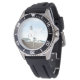 Deze tekening bevat een witte, groene en zwarte vuurtoren die het zee over het hoofd zien. De lucht is blauw met een paar wolken. Witte huizen met groene daken omringen de vuurtoren. Dit ontwerp is beschikbaar op de horloges van vrouwen, mannen en kinderen.