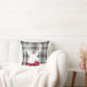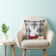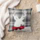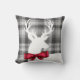 Mooie feestelijke Kerstmis themed werpt hoofdkussen die een wit hertensilhouet, een rode boog, en een grijs plaidontwerp kenmerken.