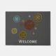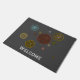 Deze mandala's werden ontworpen voor de verschillende tekens van de dierenriem, die edelstenen weergeven in het midden van elk omringd door elementen die het teken voorstellen, zoals het teken voor het teken, het sterrenbeeld en het alchemistische teken voor het element van het teken, evenals filigraanwijnstokken en weefsels die het allemaal in een vast afbeelding wikkelen. De mandala's zijn gerangschikt in een ontwerp dat doet denken aan het zonnestelsel met elk teken dat de bijbehorende planeet of hemellichaam voorstelt. Pas de tekst op deze deurmat aan met uw eigen gewenste begroeting of verwijder deze volledig om een unieke decoratie voor uw entree te maken.