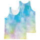 Copie bleue, verte, jaune, rose et pourpre en pastel d'aquarelle sur un débardeur unisexe.
