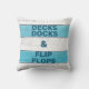 Deze leuke buitenste kussens zijn voorzien van het citaat "Decks Docks and Teenslippers" op een weersblauwe en witte houtachtergrond, waardoor het perfect is voor de boot, het huishouden, het strandhuis, het dek of de poolzijde.