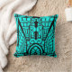Gooi kussen in een patroon gebaseerd op Art Deco architecturale details - zwart op een turkoois / pauw achtergrond