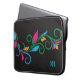 Deze kleurrijke laptop of tablet sleeve tas is klaar voor uw eigen monogram. Creëer in een gedurfd kleurrijk wervelend bladgrendelpatroon met felle kleurspatten op zwart. Bewerk gewoon je monogram letter. Uw keuze uit verschillende maten.