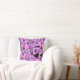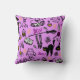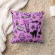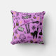 Decoratief kussen met een modern minimalistisch ontwerp voor Halloween, een patroon van silhouetten van een bezem, uil, spinnenweb, silhouet van een kat, Velma op een roze achtergrond.