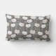 Decoratief kussen met een modern minimalistisch ontwerp, een patroon met kittengezichten, bloemen, gras op een grijze achtergrond.