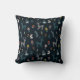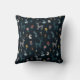 Decoratief kussen met een modern minimalistisch ontwerp, patroon met herten, konijnen, bloemen, gras op een zwarte achtergrond.